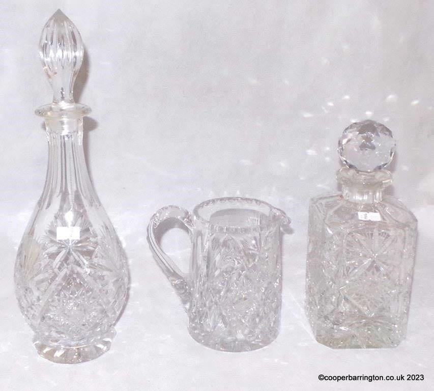 Good Vintage Set of Cut Crystal Whiskey, Wine Decanters and a Water Jug. Possibly Edinburgh. (3 Items)
