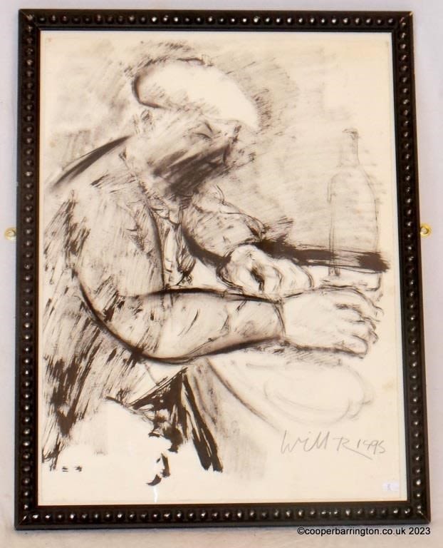 Will Roberts (1907–2000 Welsh Expressionist ) Charcoal & Ink on Paper (untitled) Ex Bryson Collection. Signed Will R 1995 lower right. Framed under glass 56 x 73 cm.