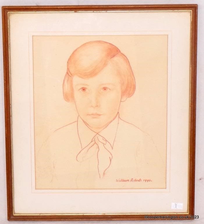 William Roberts R.A. (British, 1895-1980) Portrait Miss Joan O,Connell Age 11 or 12. Pastel. Signed William Roberts 1940. Title to verso. Framed under glass 36 x 41 cm.