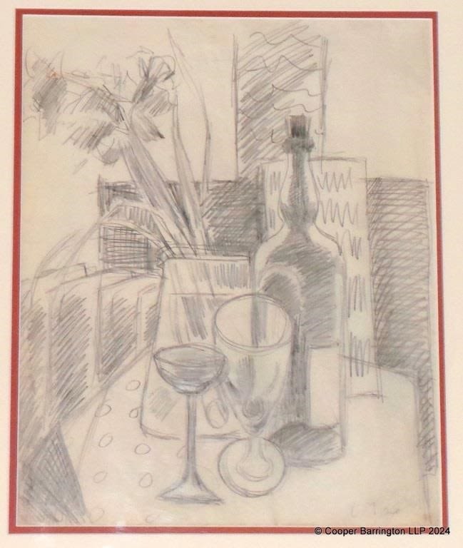 Cedric Morris (Sketty, Swansea 1889-1982). Graphite on Paper Still Life. Signed with initials and dated ‘C.M. 20’ (lower right). Framed under glass 81 x 71 cm.