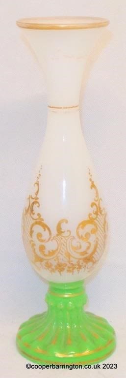 Victorian White/Green Opaline & Gilt Work Vase. 19th...