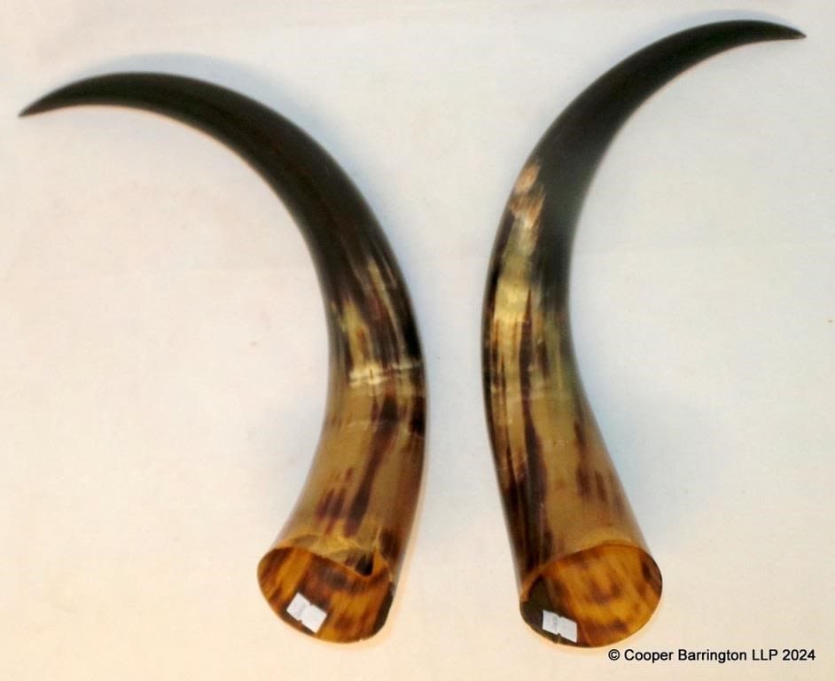 A Pair of Polished Cow Horns. Length 49 cm. (2 Items)