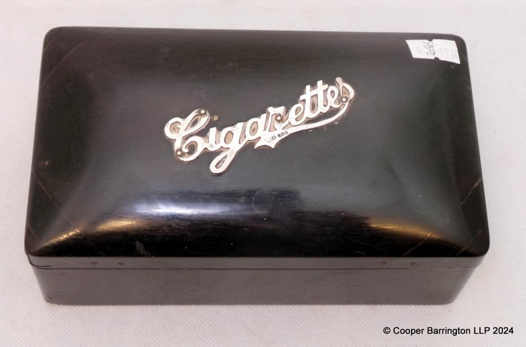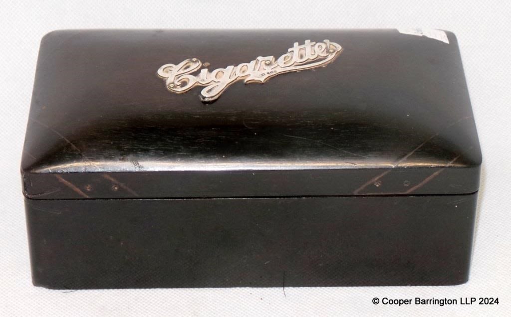 Edwardian Silver Mounted Ebony Cigarette Box Cedar Lined...