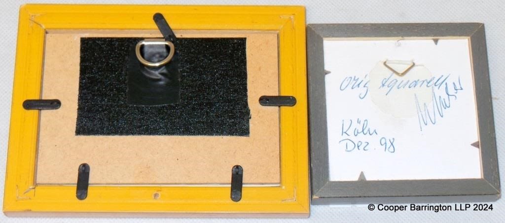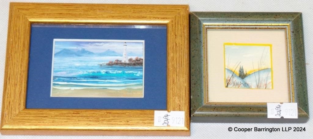 Two Signed Miniature Paintings to Include: Watercolour of Koln Cathedral by Oriz Aquarell. December 1998. Also Oil on Board Seascape by Torros. Both framed under glass 8.6 x 8.6 cm and 13.7 x 10.3 cm. (2 Items)