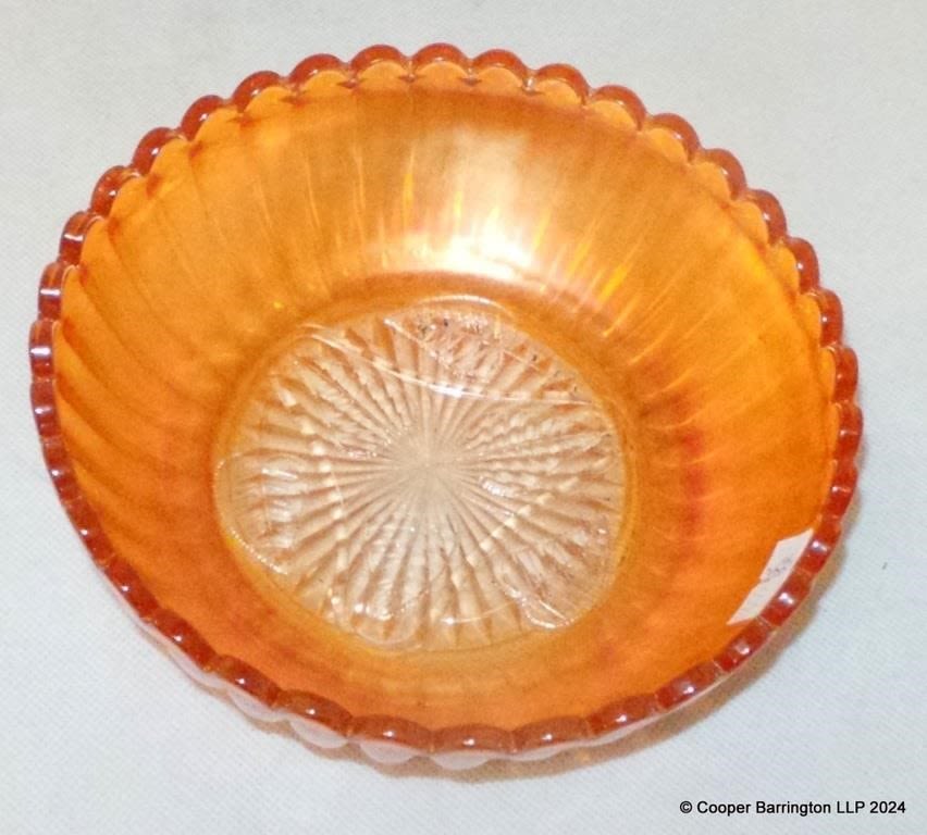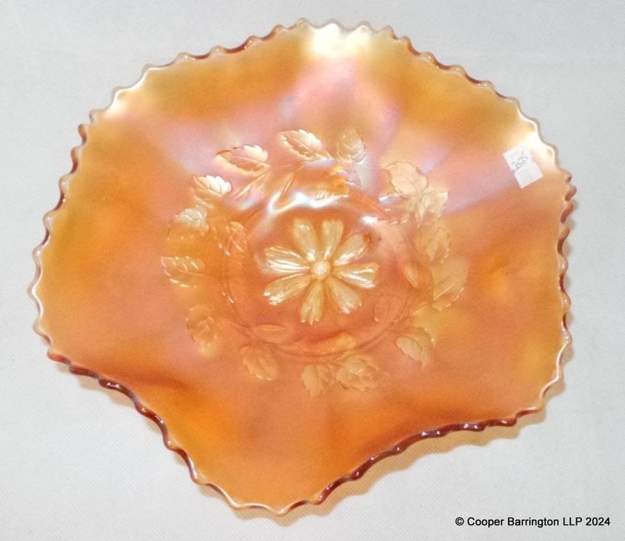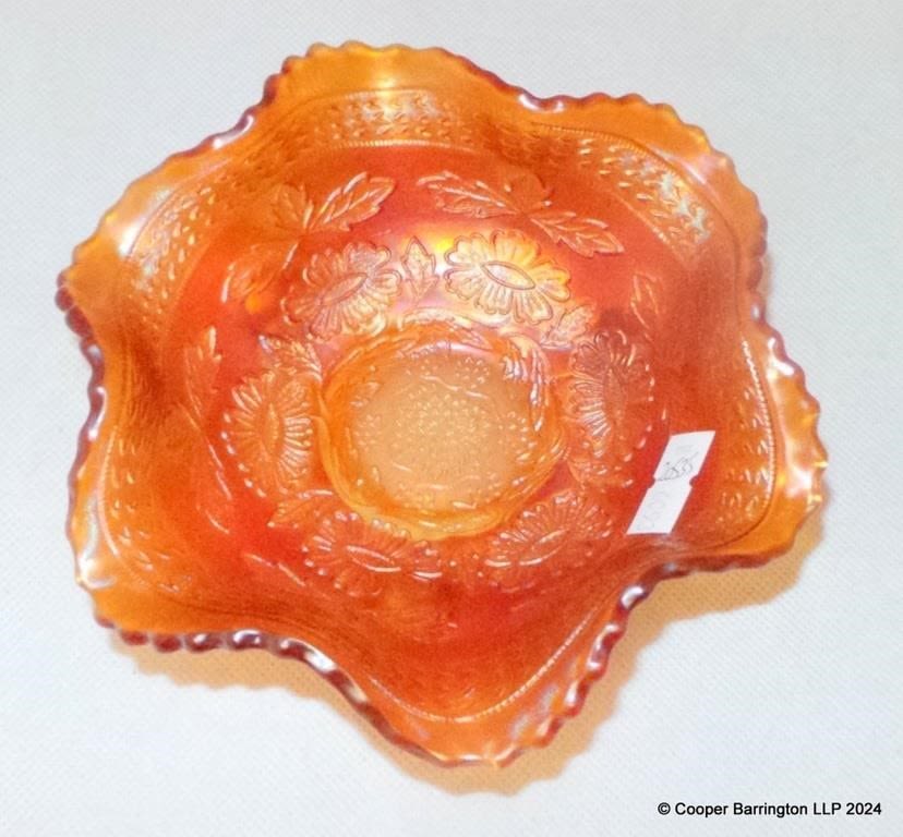 Scarce Fenton Emerald Green Carnival Glass 8 inch Orange Tree Bowl. Also Three Marigold Bowls. (4 Items)