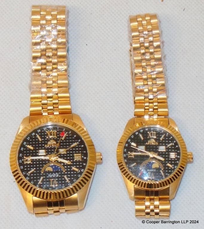 Lady and Gents Astron Swiss Day Date,Moonphase Quartz Wristwatches. As New. Working Order. (2 Items)