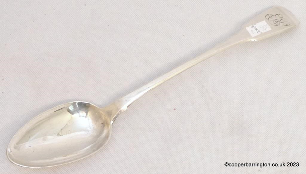 George III Sterling Silver Fiddle Pattern Basting Spoon by Williams Eley,Fearn & Chawner. Hallmarked London 1810. Monogram EN. 152.6 gm. Length 30.5 cm.