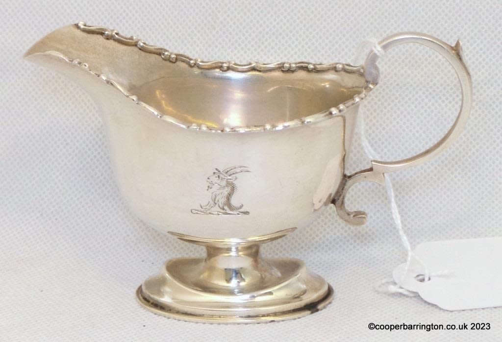 KGV Sterling Silver Cream Jug by Johnson,Walker & Tolhurst. Hallmarked London 1911. Ellis family Crest. 66.2 gm.