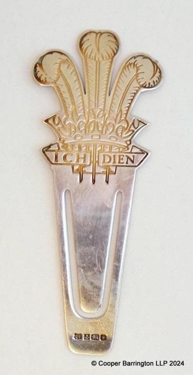 Prince of Wales ‘Ich Dien’ Sterling Silver Bookmark by Troika Designs Ltd. Hallmarked Birmingham 1981.