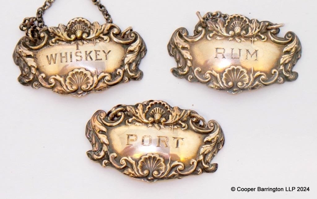 Vintage Silver Plated Decanter Labels. Port. Rum and Whiskey. (3 Items)