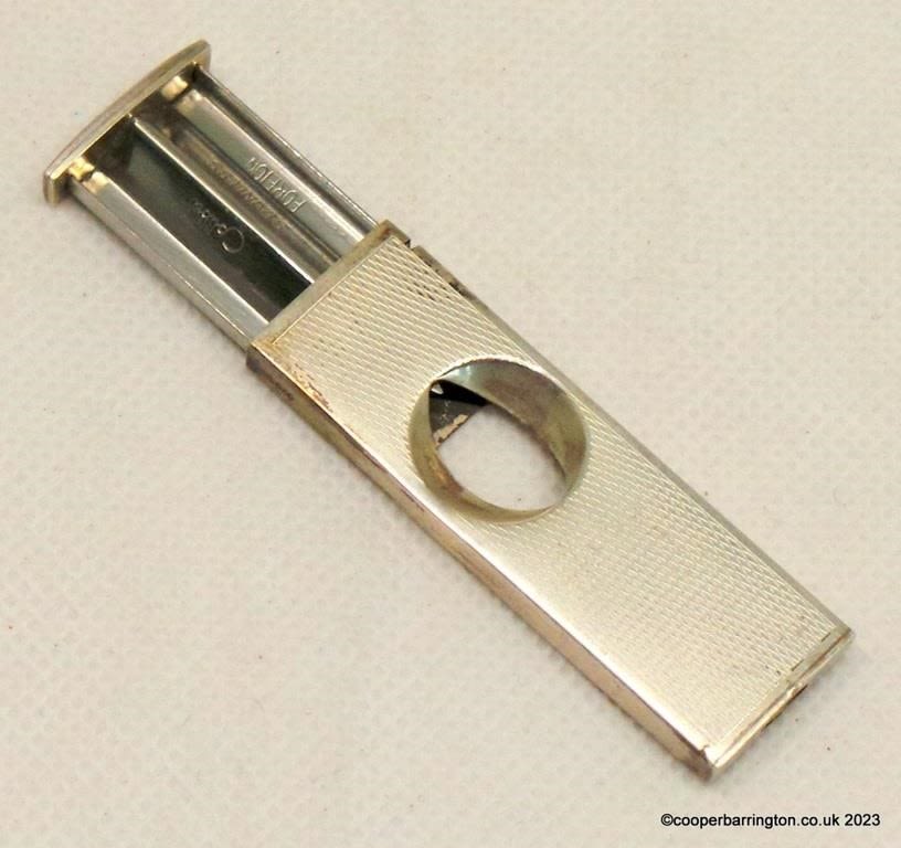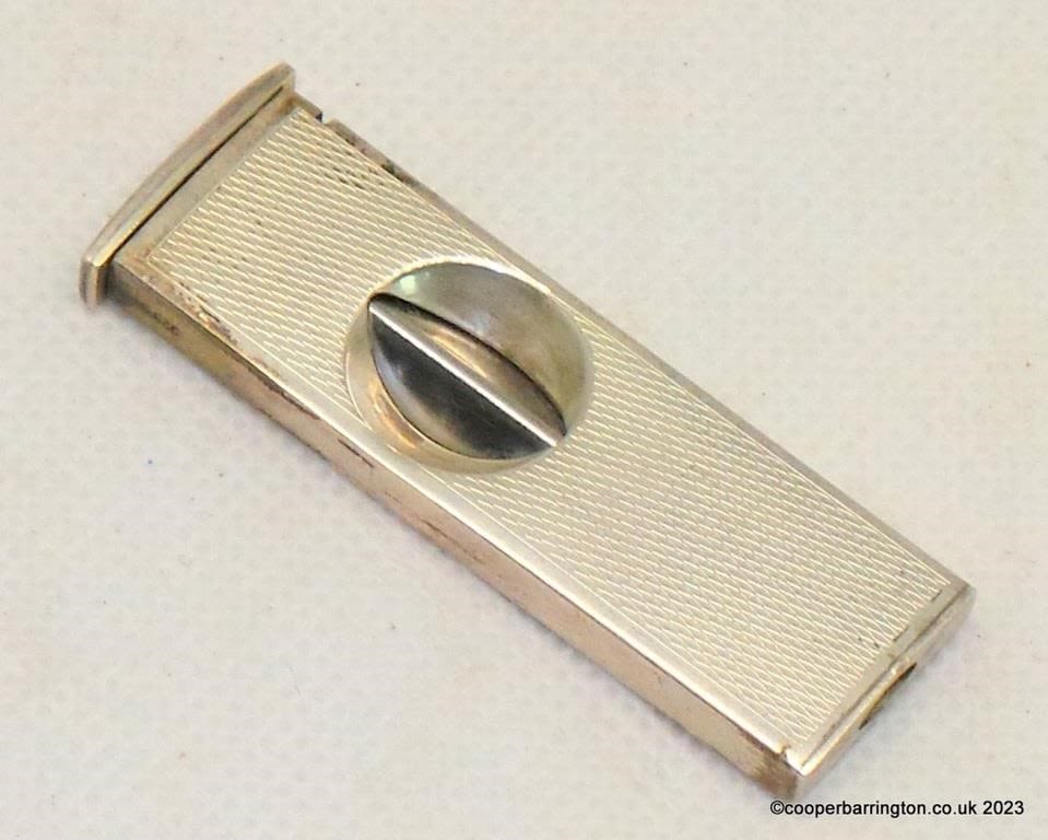 Colibri Sterling Silver Engine Turned Mounted Cheroot Cutter. Early 20th Century. Import silver mark .925S.