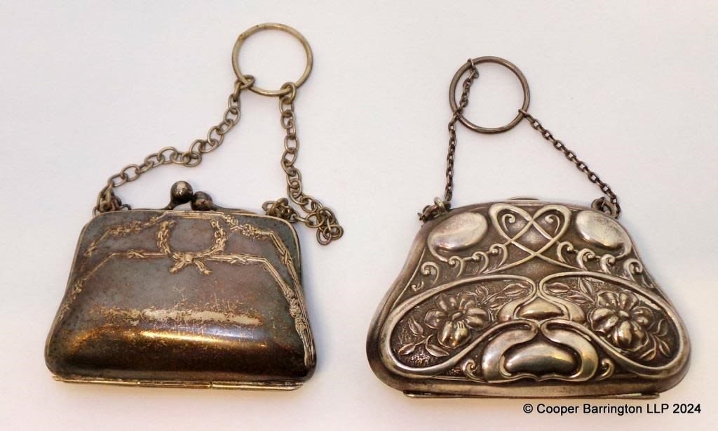 Antique Art Nouveau Silver Plated Purse with Stylised Repousse Decoration. Plus one other. Early 1900. (2 Items)