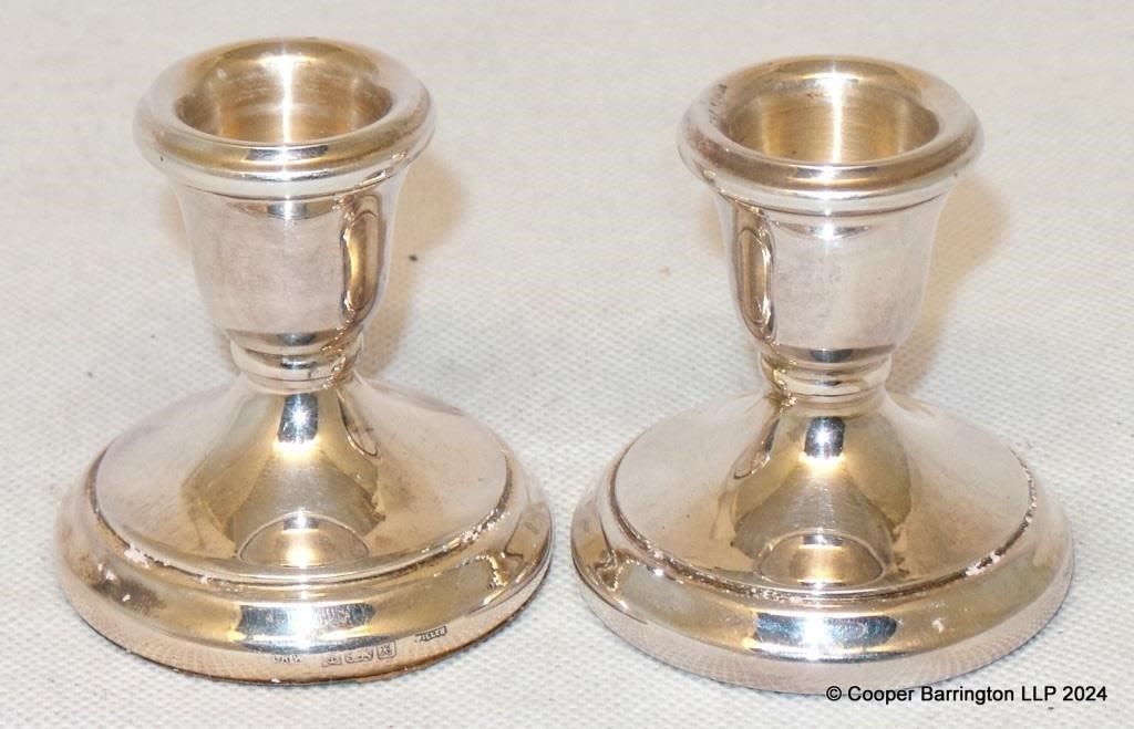 A Pair QEII Sterling Silver Dwarf Candlesticks by Laurence R Watson & Co. Hallmarked Birmingham 1997. (2 Items)