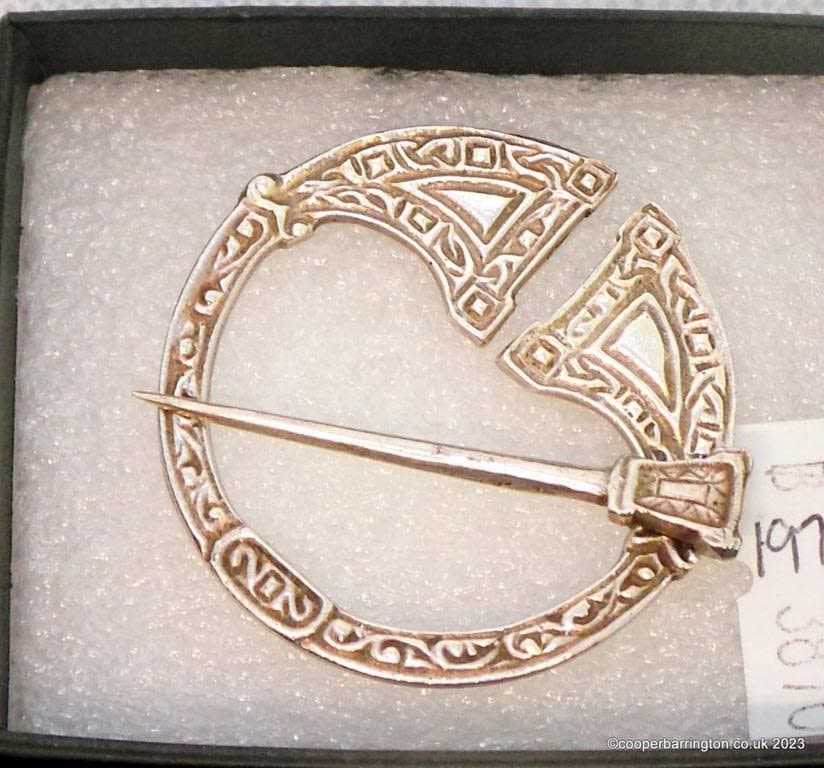 KGVI Sterling Silver Celtic Penannular Shawl/Kilt Clasp by A.H.Darby & Sons. Hallmarked Birmingham 1942. Boxed.