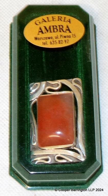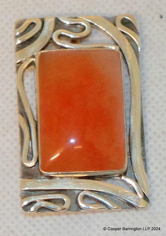 Vintage Art Nouveau Style Sterling Silver Carnelian Pendant / Brooch. Marked .925. 4.7 x 3 cm. Boxed.