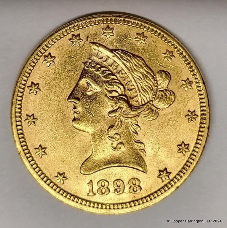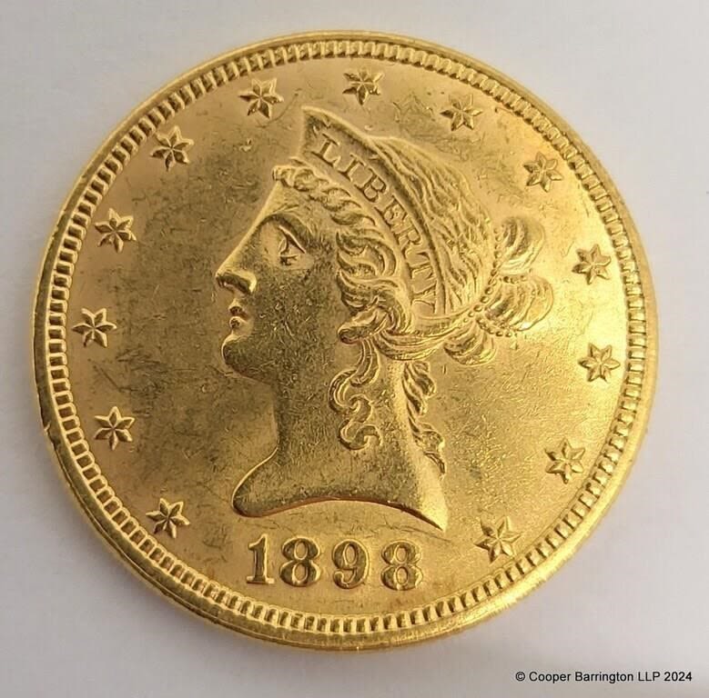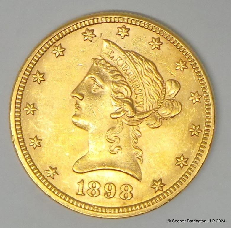 1898 Coronet Head Gold $10 Eagle Uncirculated.