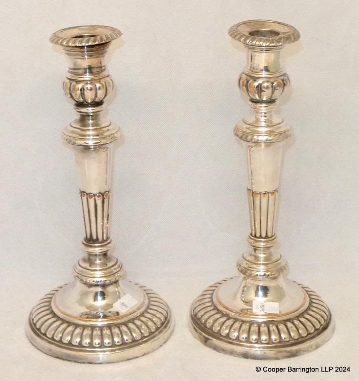 A Pair Antique Sheffield Silver Plate Candlesticks. 19th...