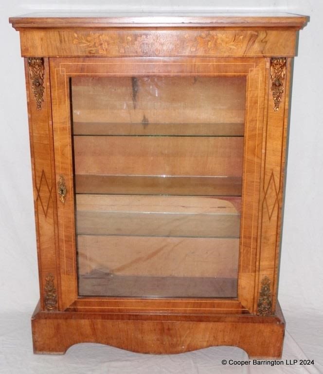 Victorian Inlaid Walnut Pier Display Cabinet. 19th Century....