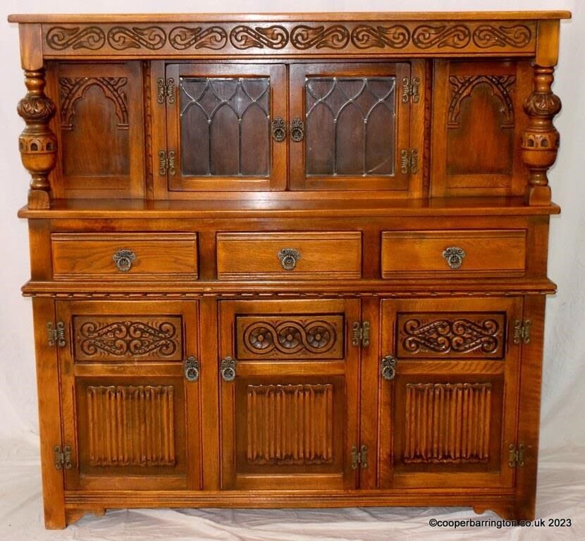 Old Charm Carved Tudor Oak Court Cupboard/ Buffet