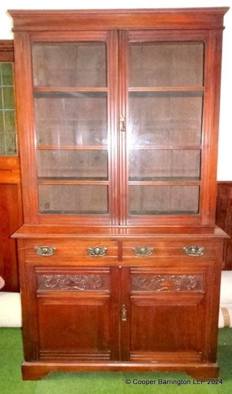 Victorian Carved Mahogany Bookcase. Late 19th Century. Three...