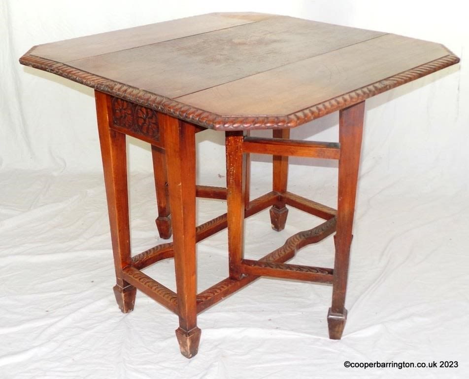Antique Mahogany Carved Dropleaf Table with Drawers at...