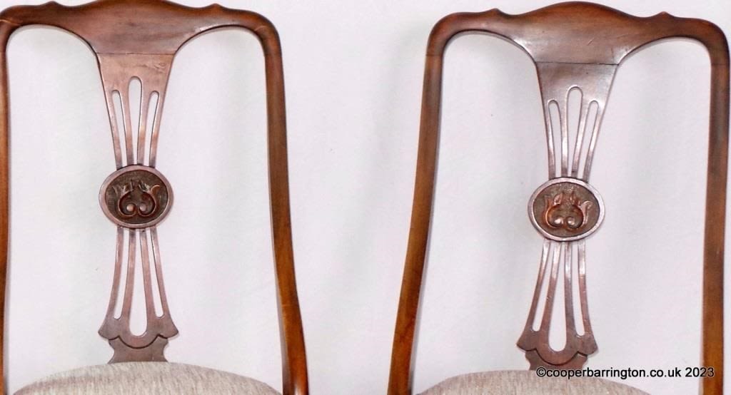 A Pair of Edwatdian Mahogany Georgian Style Side Chairs. Early 1900. Having a carved central splat,serpentine front on cabriole legs with pad feet. Height 39 inches.