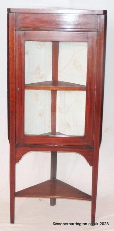 Edwardian String Inlaid Mahogany Standing Corner Cabinet. Early 1900. Height 49 in. Width 21 in. Depth13 in.