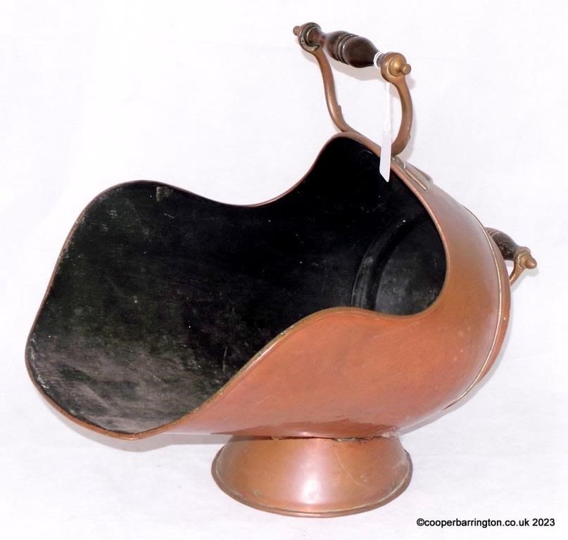 Victorian Copper Helmet Coal Scuttle. Circa 1900. Loop...
