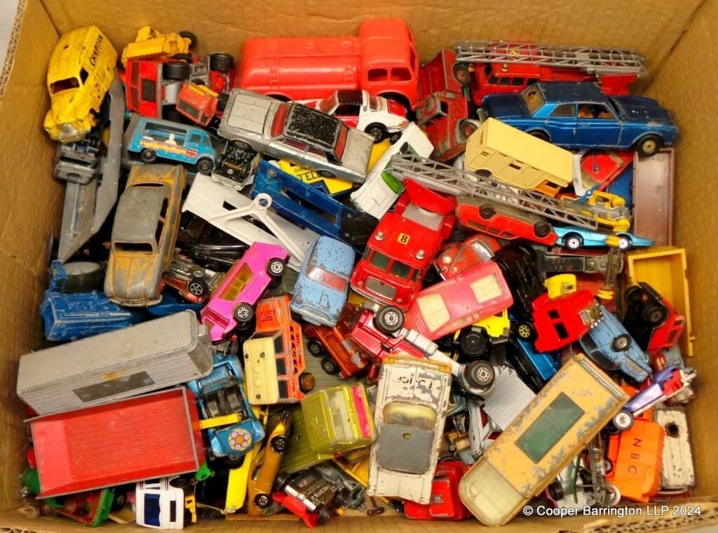 Large Box Playworn Dinky,Corgi,Matchbox Etc Cars.