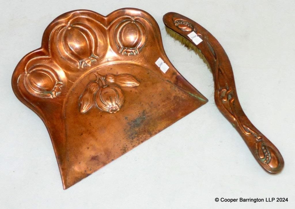 Victorian JS & S Joseph Sankey & Sons Art Nouveau Copper Crumb Tray and Brush. Reg.No. 381305. (2 items)