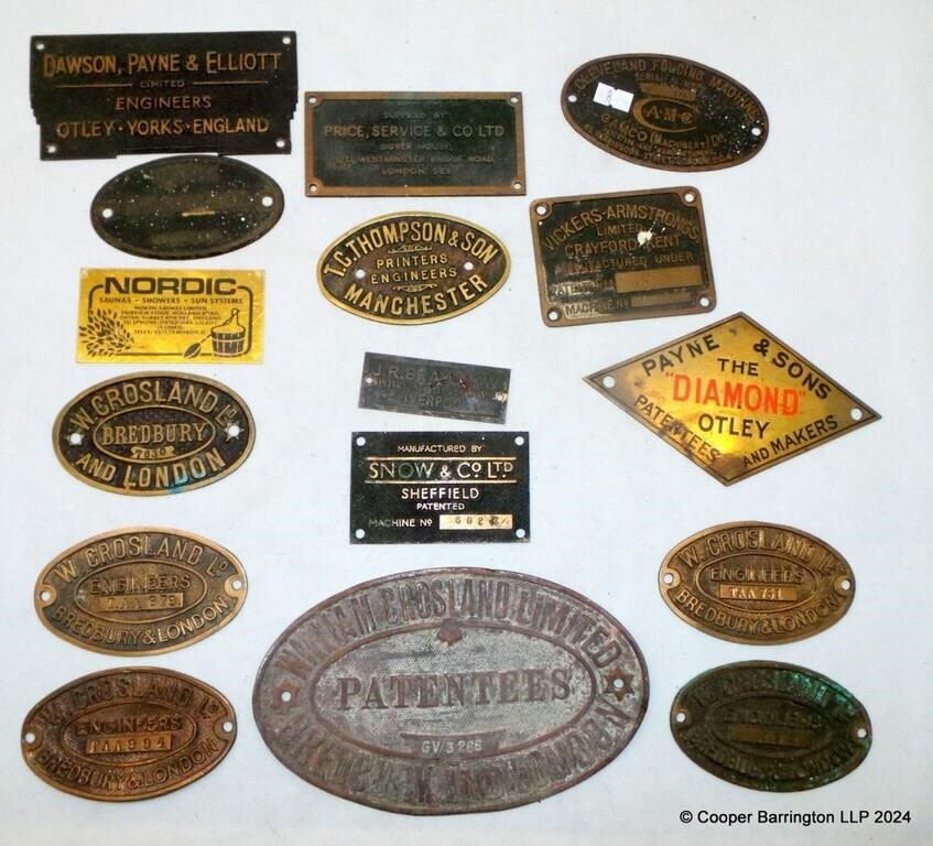 Collection of Works Plates to Include: Snow & Co. Vickers Armstrongs. W.Crosland. T.C.Thompson & Son Etc. (16 Items)