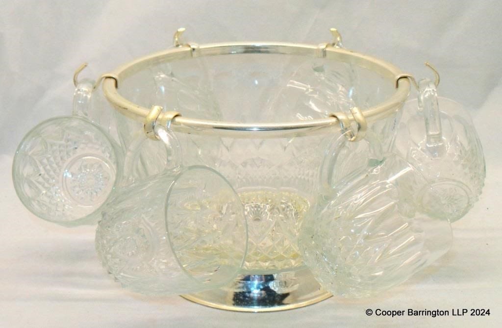 Reims France Cut Glass and EPNS Punch Bowl Set