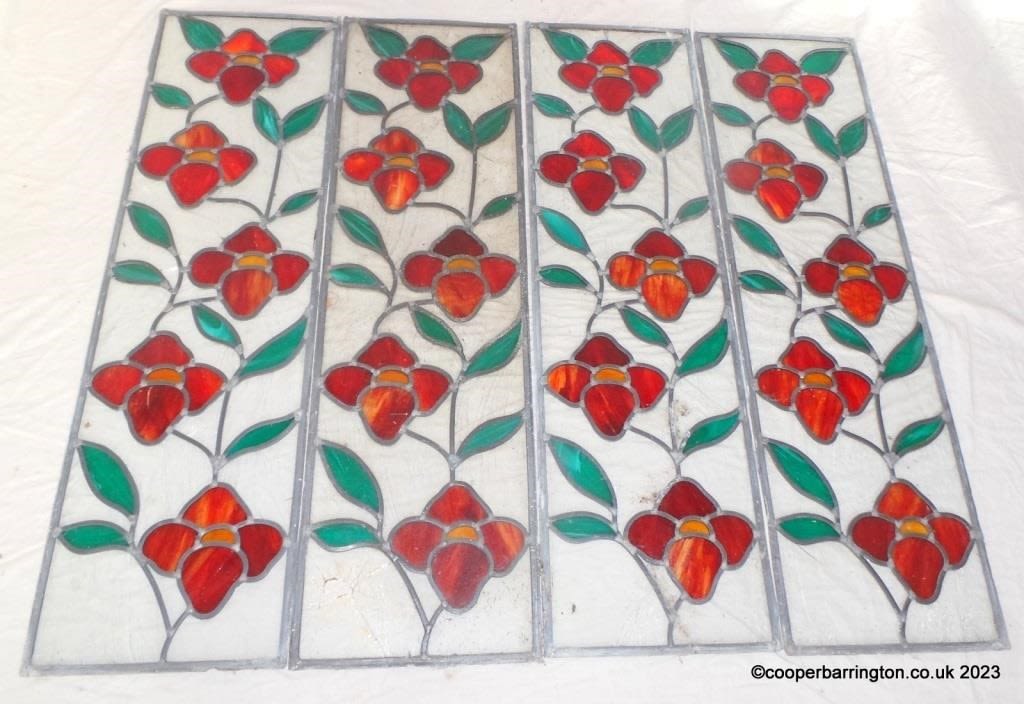 Four Stained Glass Panels. 20th Century. Each 102 x 29.5 cm. (4 Items) 1 a/f.