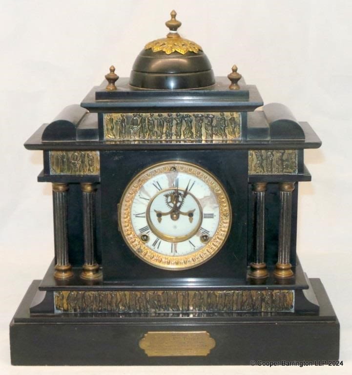 Antique Architectural Form Ansonia Open Escapement Slate Mantle Clock. Late 19th Century. 38.5 x 41 cm.