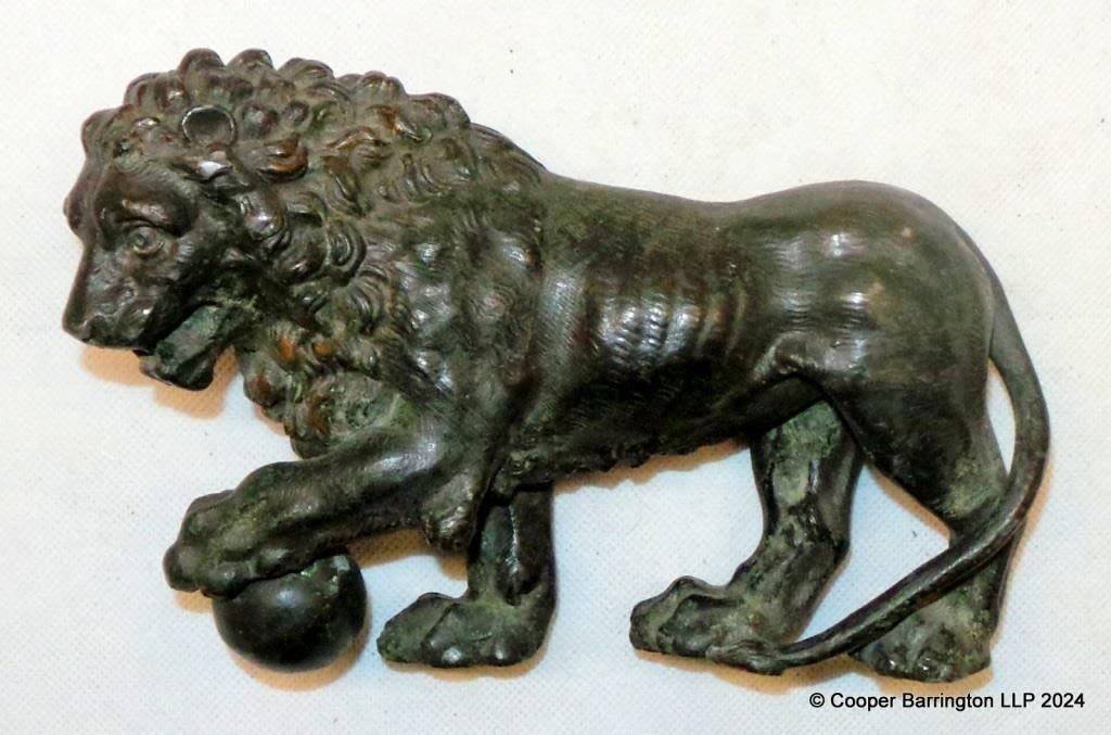 Antique Spelter Grand Tour Lion of Warterloo Figurine. Late 19th Century. Width 18.5 cm.