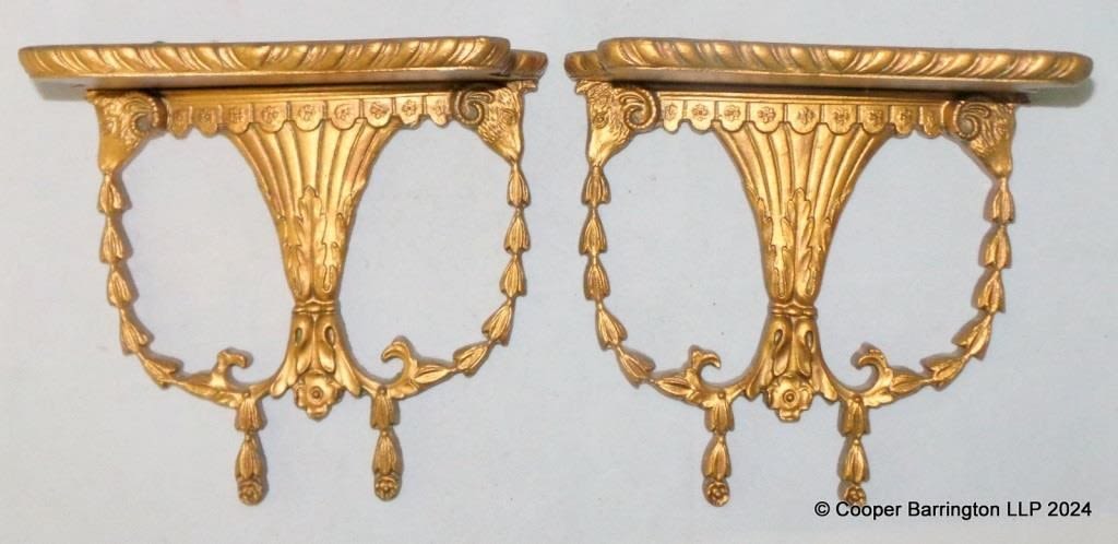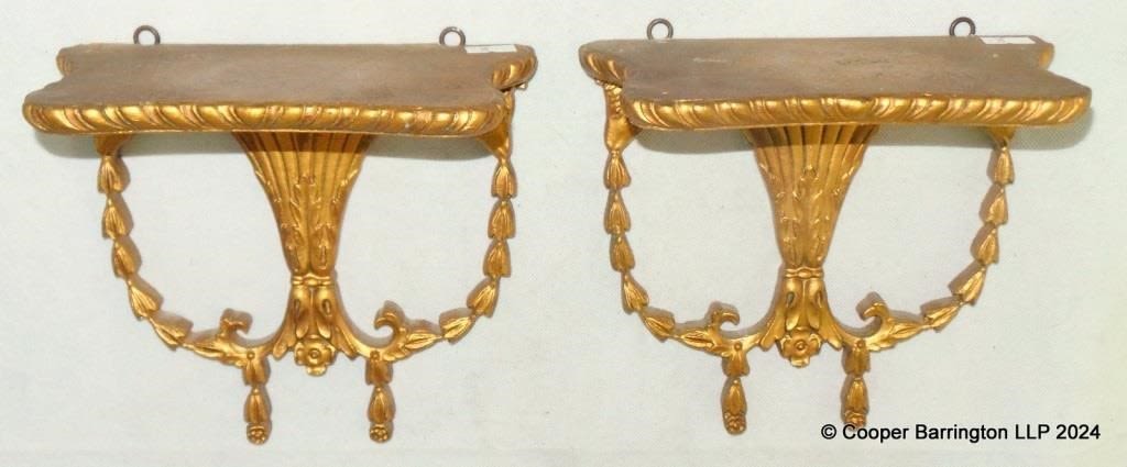 A Pair Gilt Console Shelves Classical Taste Wooden. Early/Mid 20th Century. Width 21 cm. Height 19.5 cm Depth 11.5 cm. (2 items)