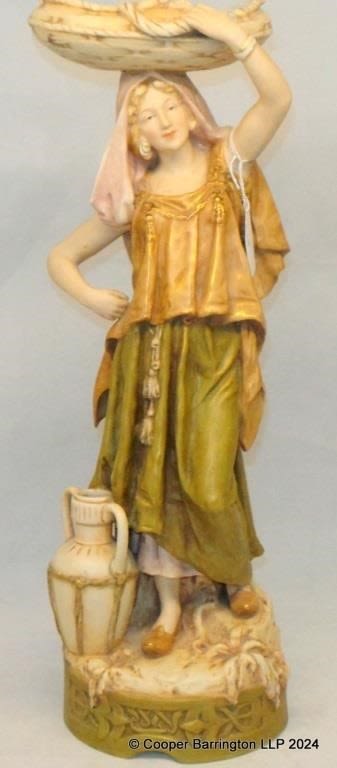 Royal Dux Porcelain Figurine Female Basket Carrier. Model...