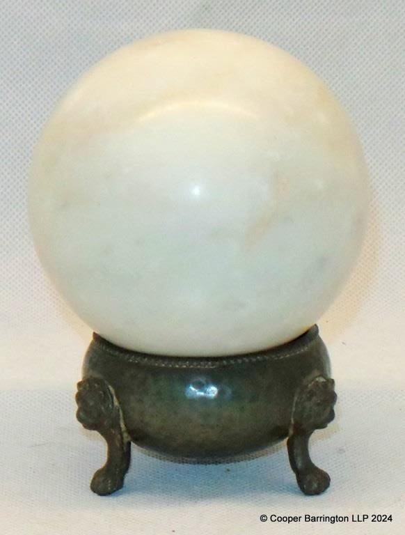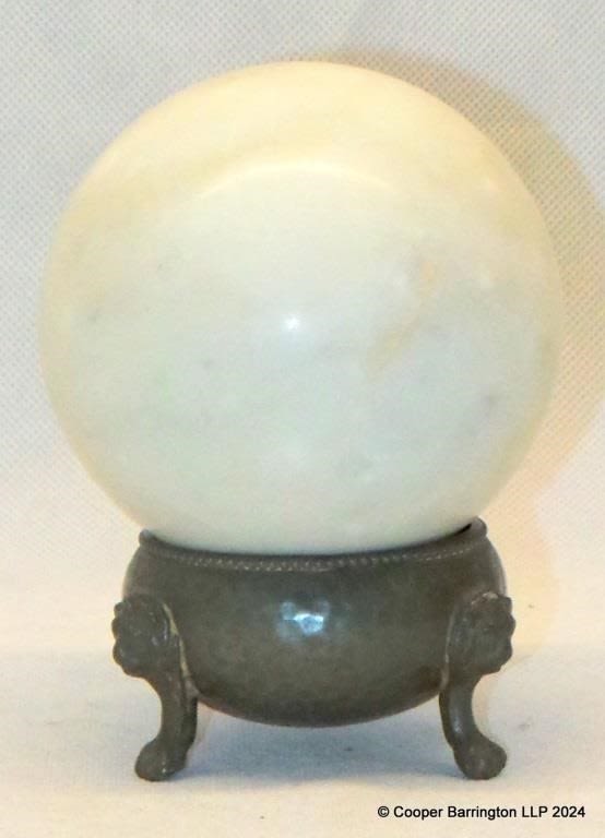 Italian White Marble Sphere Orb Art Sculpture on Pewter Stand. Diameter 8cm.