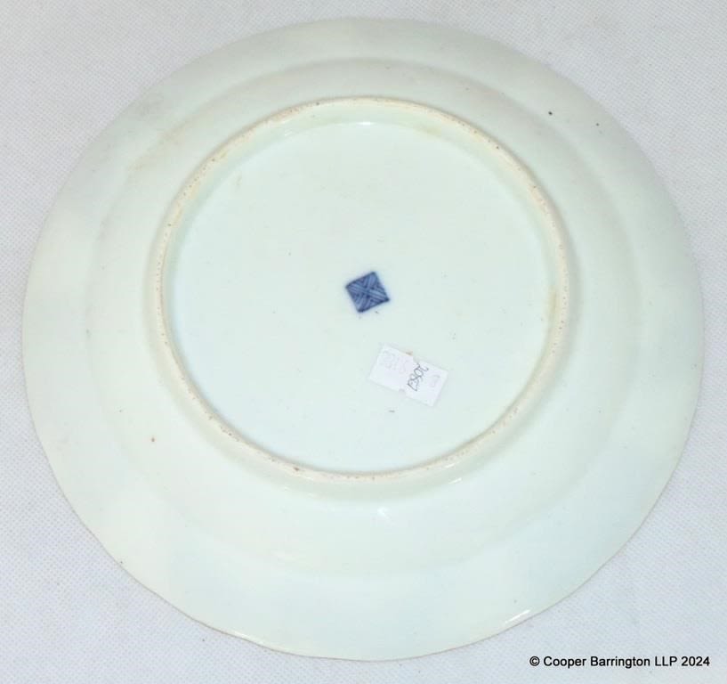 Samson Worcester Style Blue Scale Plate. 19th Century. Handpainted folate decoration. Diameter 22.3 cm. Worcester ‘fret’ mark.