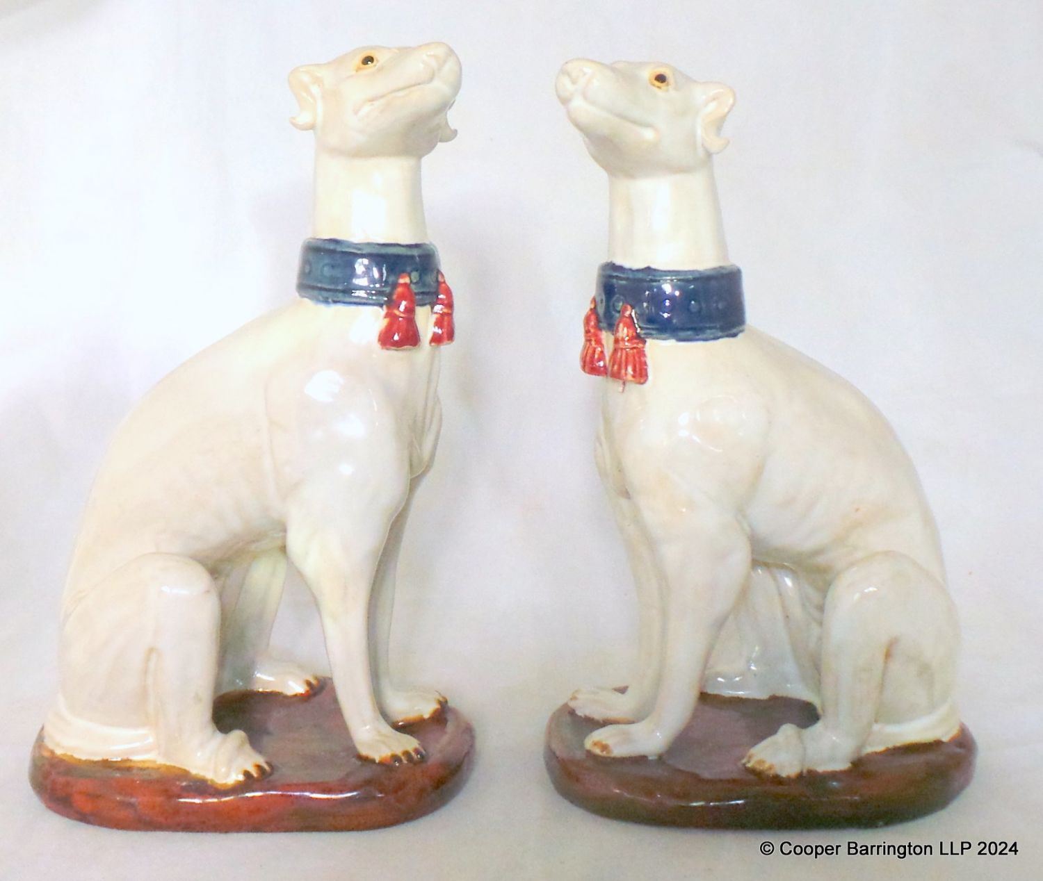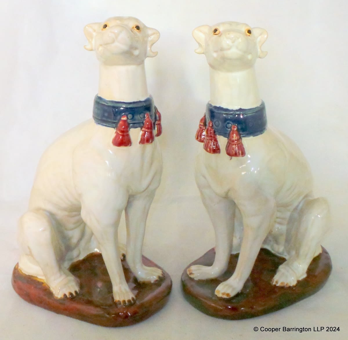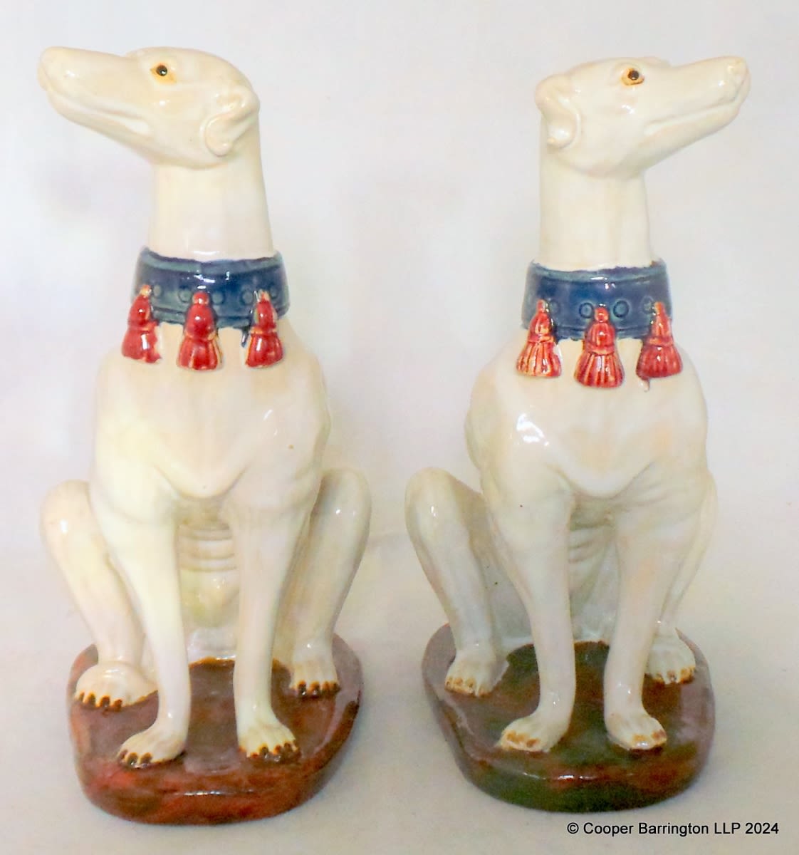A Pair Italian Majolica Greyhounds
