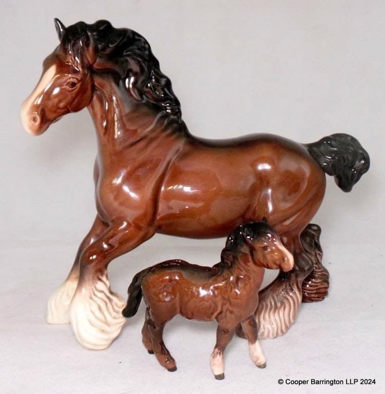Beswick Cantering Shire Together with Shetland Foal by Arthur Gredington. Model No.975 and 1034 Gloss. (2 Items)