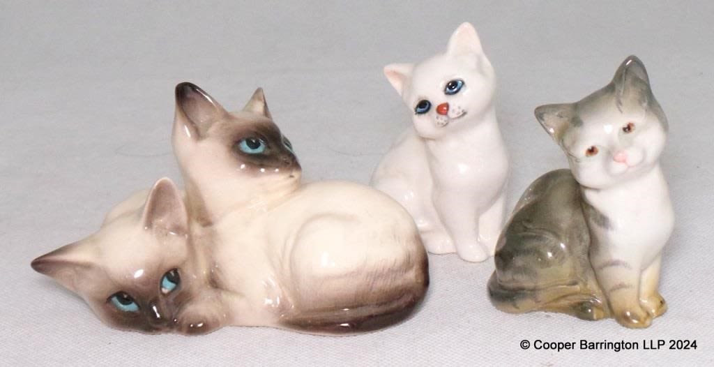 Beswick Siamese Kittens Seal Point No.1296 Gloss. Also Beswick Kittens Seated Grey Striped & White Large Eyes No 1436. Gloss (3 Items)