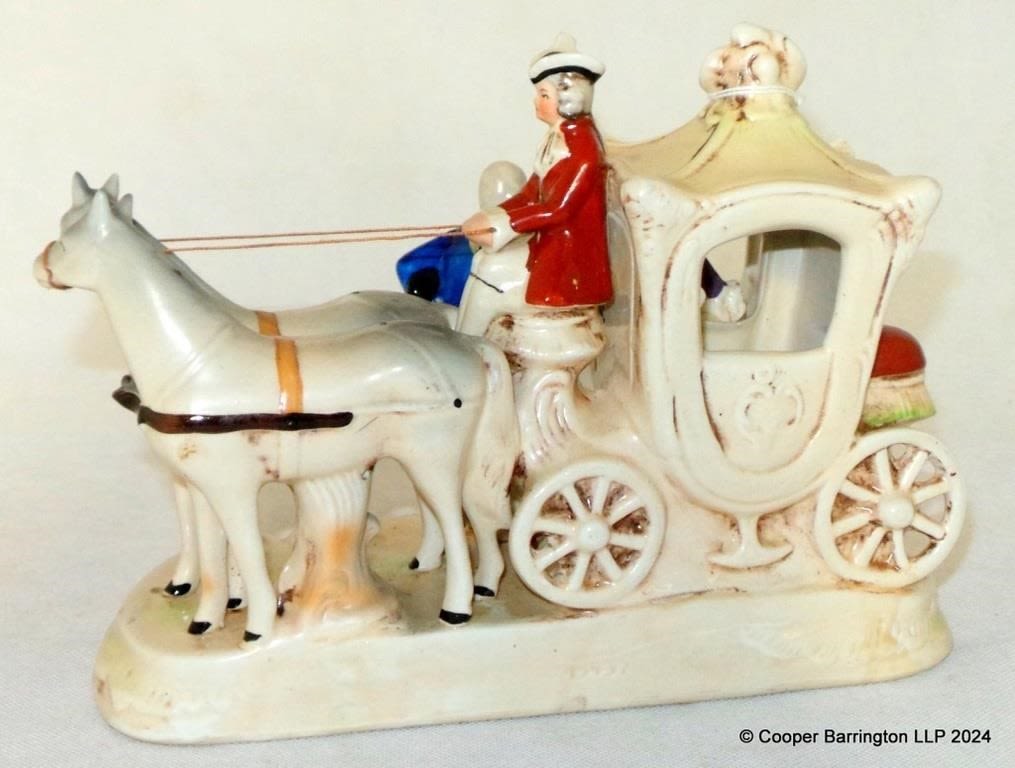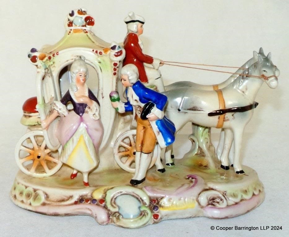 Antique Grafenthal Germany Porcelain Horses & Carriage with Courting Couple. Early 20th Century. Grafenthal printed mark. Height 17cm. Width 23 cm.