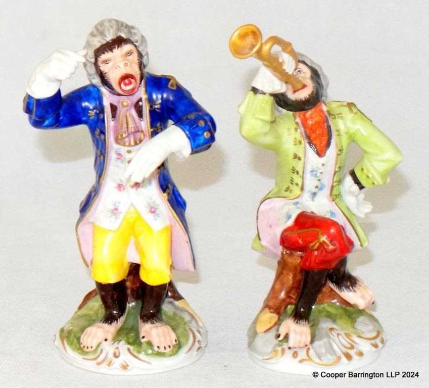 Antique Dresden Monkey Band Trumpet Player and Conductor. Early 1900s.