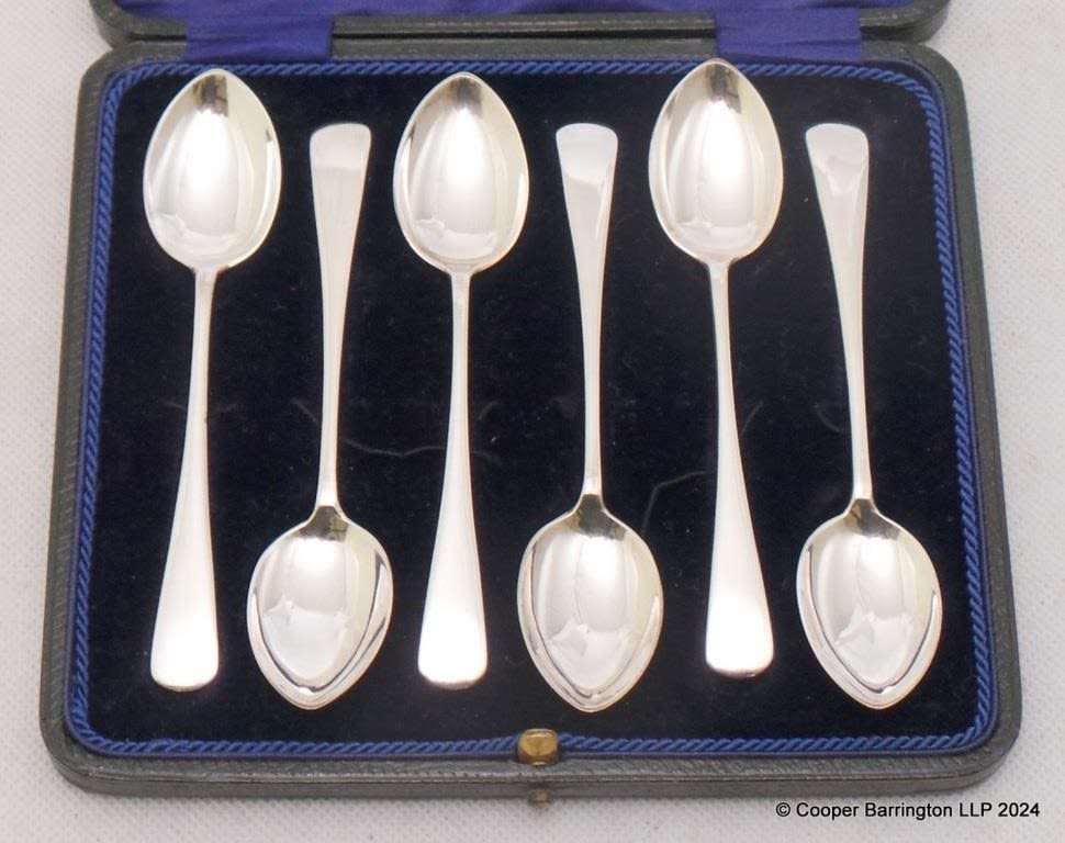 Cased KGV Sterling Silver Teaspoon Set by Joseph Gloster. Hallmarked Birmingham 1921. (6 items)