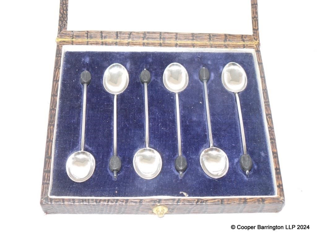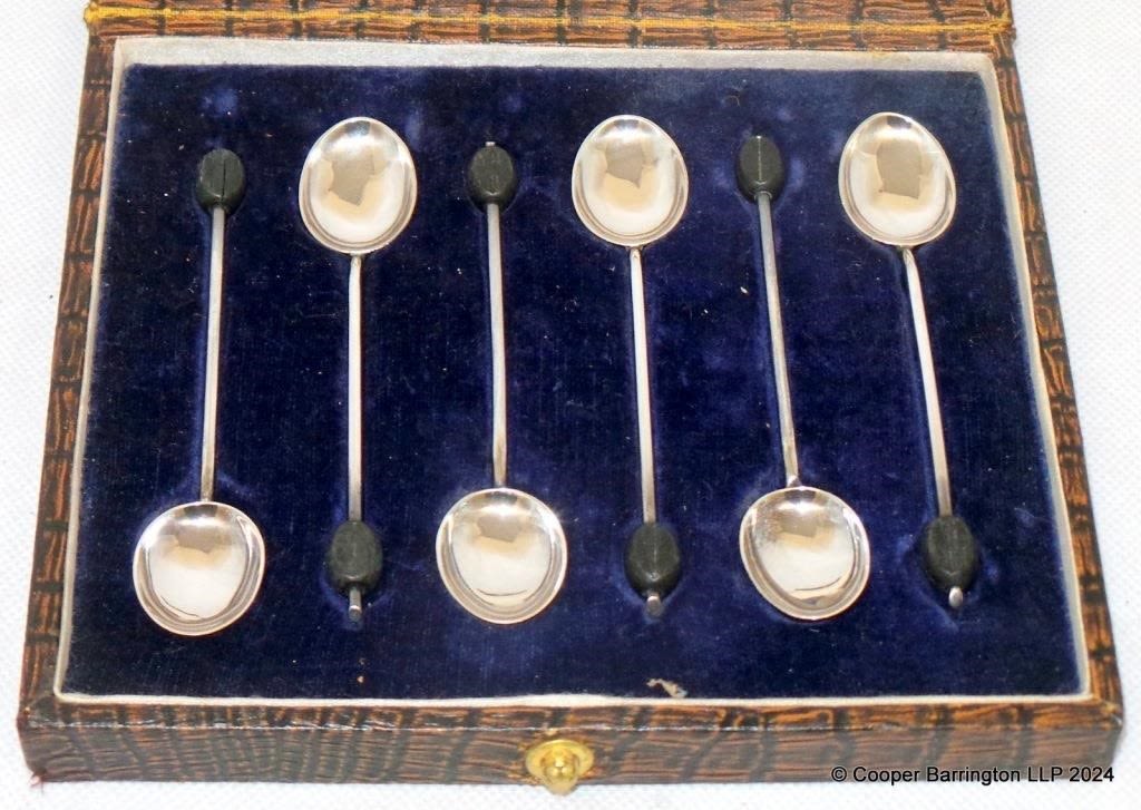 Boxed Set of 6 Art Deco Silver Coffee Bean Spoons