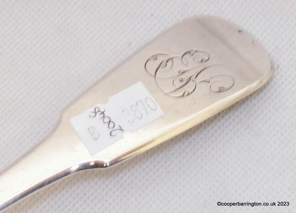 George III Sterling Silver Fiddle Pattern Basting Spoon by Williams Eley,Fearn & Chawner. Hallmarked London 1810. Monogram EN. 152.6 gm. Length 30.5 cm.