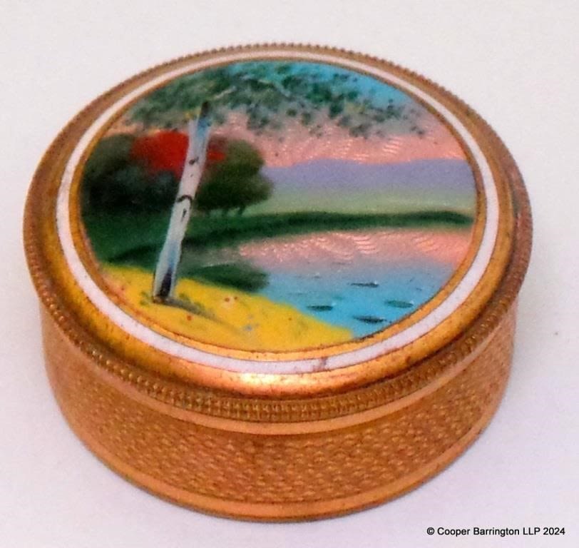 Scarce French Antique ARTES Enamel Landscape Compact. Early 1900s. Diameter 3 cm.