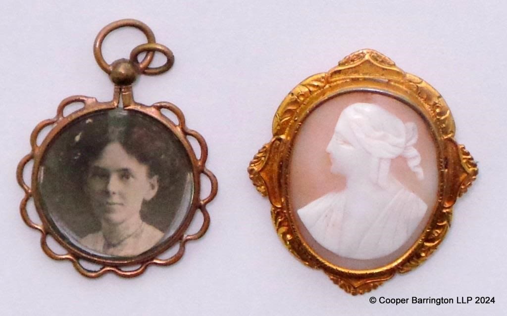 Antique Gilt Metal Shell Cameo Brooch & Pendant