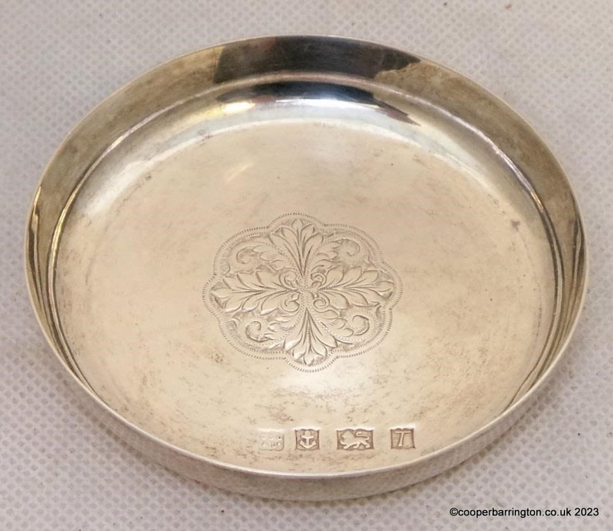 QEII Sterling Silver Engraved Wine Coaster by C.S.Greenwood & Co.. Hallmarked Birmingham 1993. Diameter 7.7 cm. 39.2 gms.